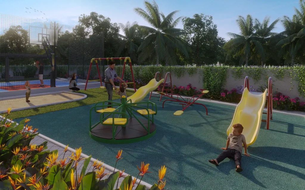 PM Gardens offers ultra-luxury 2 and 3 BHK residences. These apartments redefine urban living with spacious layouts, privacy, and a range of amenities. The design emphasizes villa-like living with features like 6-feet gaps between flats and 15×15 ft living rooms. It’s a community focused on quality, comfort, and elegance
